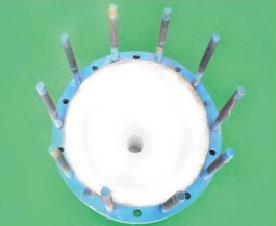 主要用于硫酸鉀生產系統,成功替代了進口設備。該設備要求頂部零部件耐溫540度左右,下部為多節式組合,介質經多次再分配冷卻、吸收,介質出口溫度55度左右。設備整體全部采用石墨材料。我公司經特殊處理,成功解決了設備耐高溫、雙向耐腐蝕等諸多技術難題,技術水平為國內行業之最。